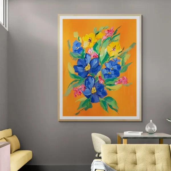 Vibrant Floral Burst – Modern Digital Floral Art: Colourful Standard Frame Wall Décor