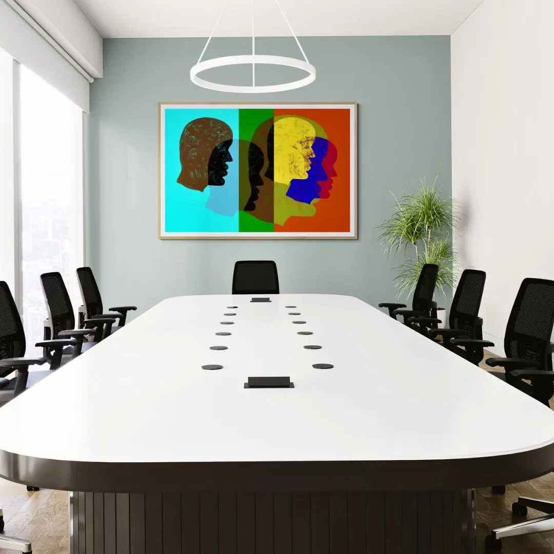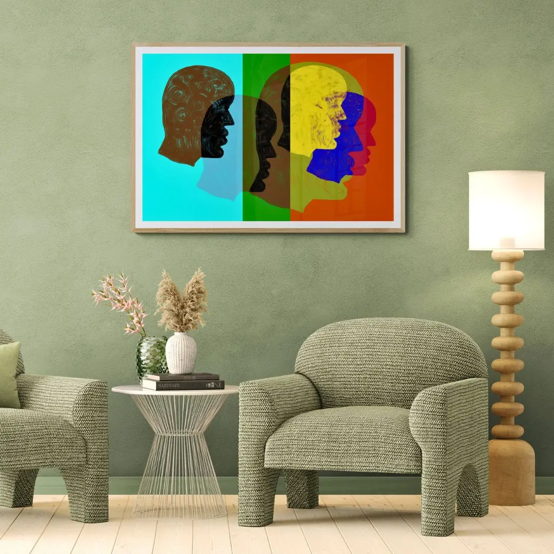 This thought-provoking artwork presents overlapping heads in varied tints, symbolizing the layered nature of human thoughts, emotions, and perceptions. It reflects diverse ways of thinking while highlighting shared mental connections, inviting viewers to recognize both individuality and the interconnected, relational nature of the human mind.