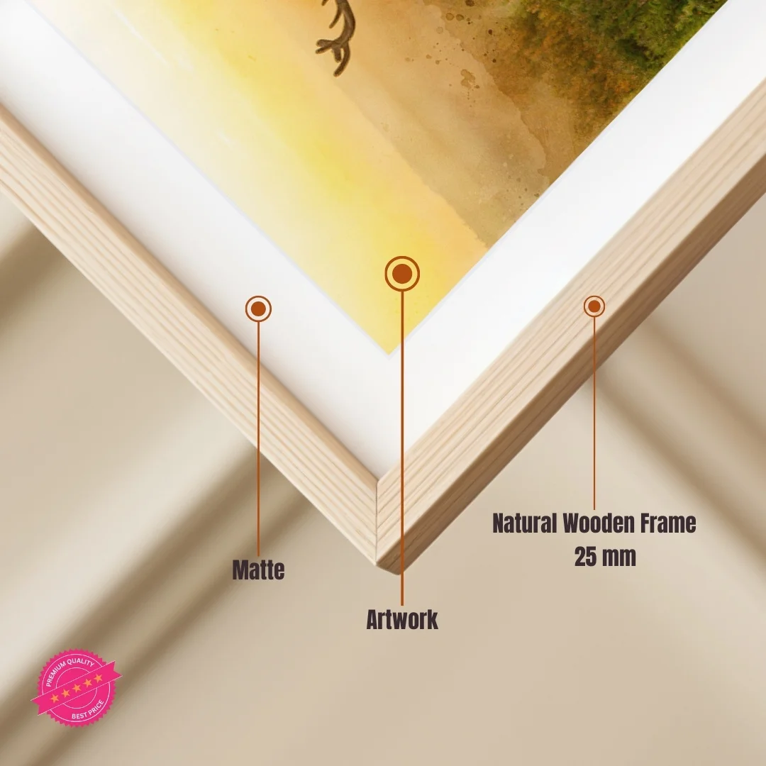 You're viewing: Golden Majesty: Deer at Sunrise: Nature Canvas Painting Framed wall art Price range: ₹2,499.00 through ₹4,999.00