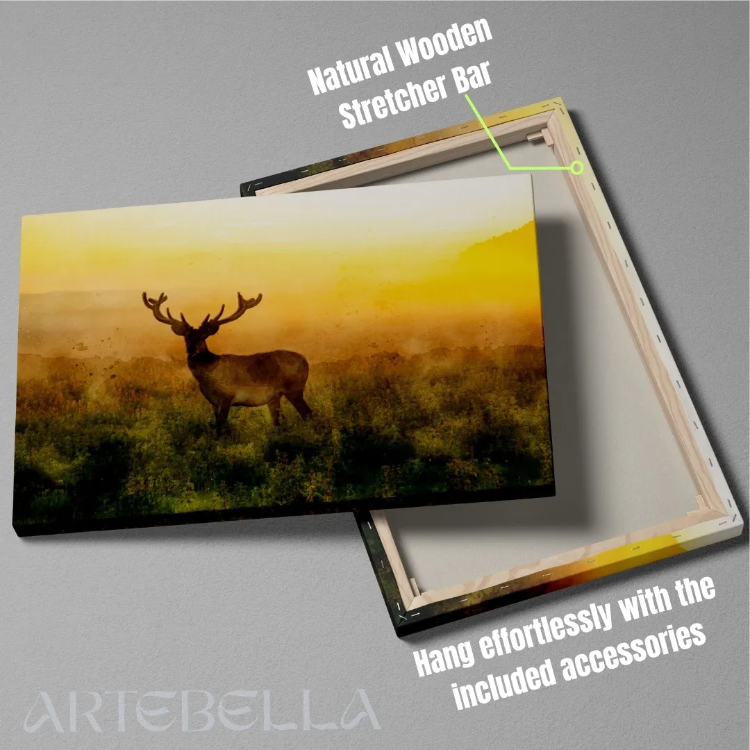 Golden Majesty: Deer at Sunrise: Nature Canvas Painting Gallery Wrap Wall Décor