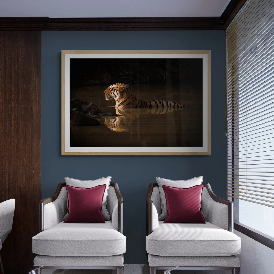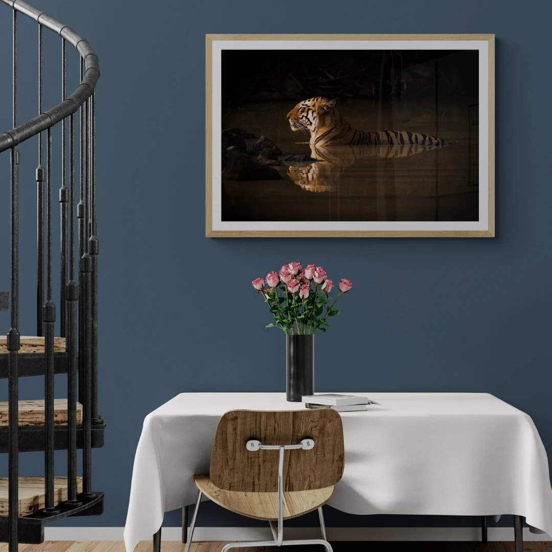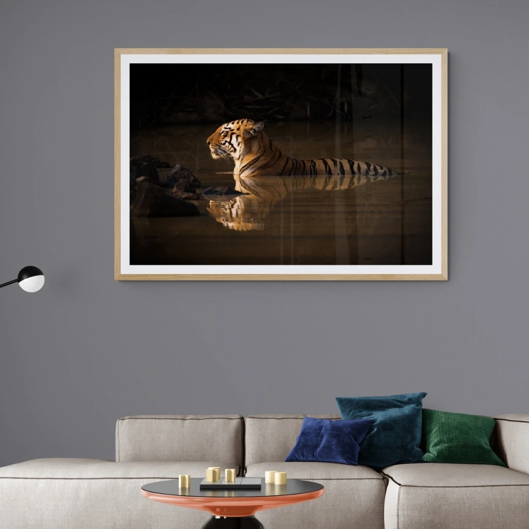 You're viewing: “Grace in the Wild: Tiger in Calm Waters” wall art Price range: ₹2,499.00 through ₹4,999.00