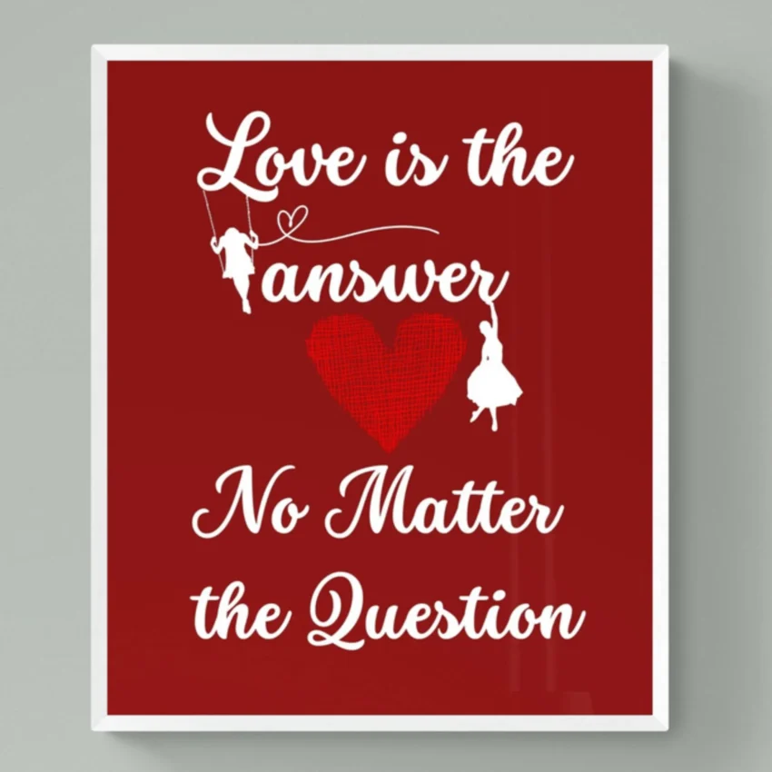 Embrace the power of love with this beautifully framed quote. A reminder that love is the answer, no matter the question. Perfect for homes, meditation spaces, or anywhere you want to spread love and hope.
