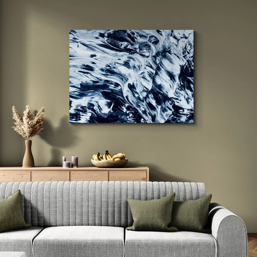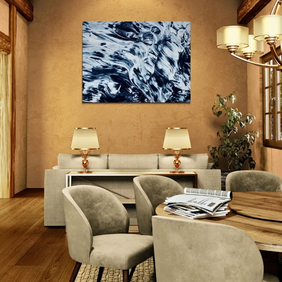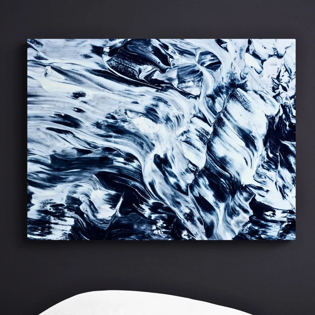 Dive into the mesmerizing flow of “Rhythms of Fluidity,” a piece that captures the essence of movement and depth in a sea of swirling blues. This abstract artwork evokes a sense of calm yet dynamic energy, inviting the viewer to lose themselves in its intricate textures. Perfect for those who seek tranquillity and introspection, this canvas print adds a touch of elegance and mystery to any space, making it a compelling choice for art lovers and design enthusiasts alike.