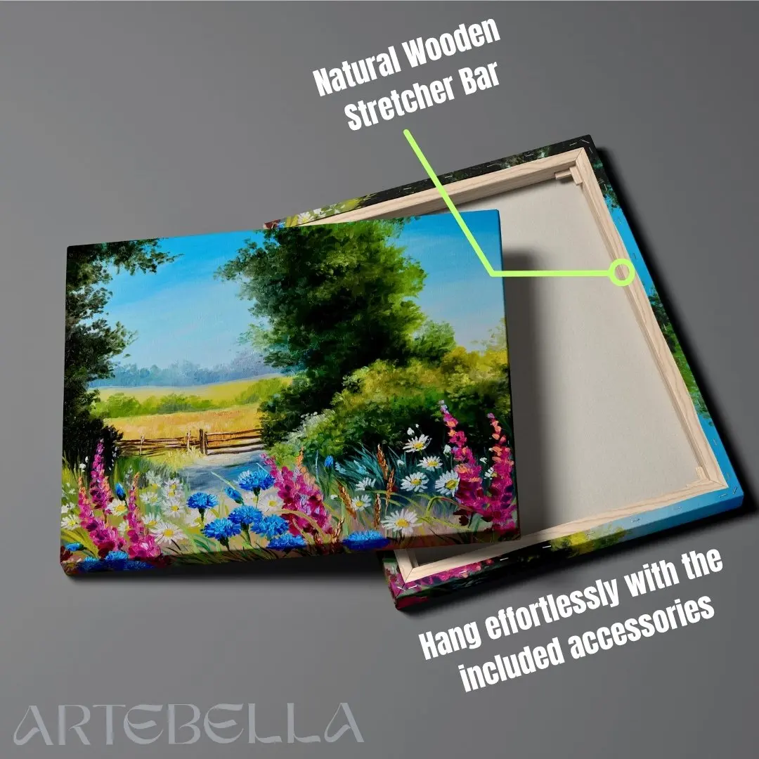 Tranquil Pathway – Nature Landscape Canvas Painting: Gallery-Wrapped Wall Art for Home Décor