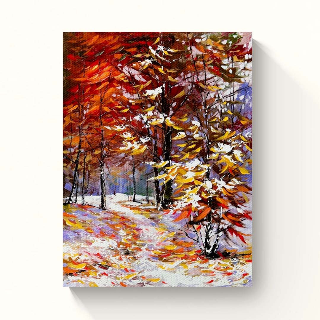 Winter Tranquility is a serene abstract landscape capturing the quiet stillness of a winter morning. Bare trees, soft textures, and a misty sky in cool whites, greys, and subtle blues create a calm, reflective mood. Gentle warm accents add balance, making it ideal for modern Indian homes seeking peaceful, nature-inspired elegance in living rooms, bedrooms, hallways, or offices.