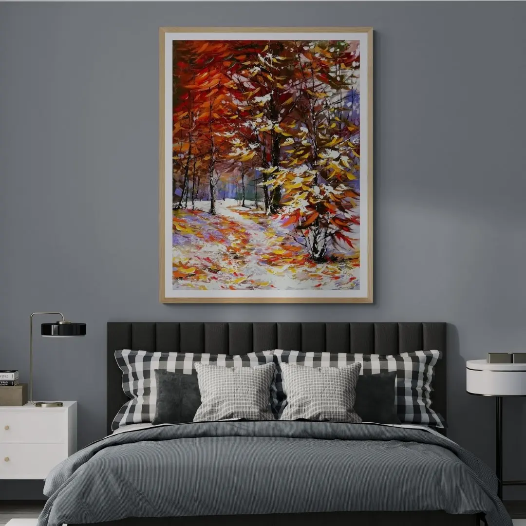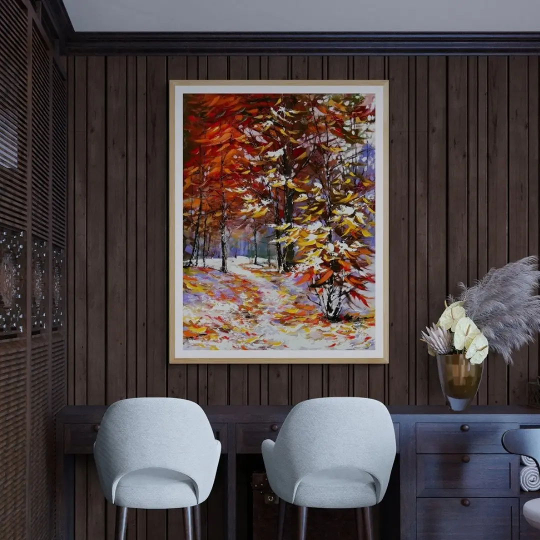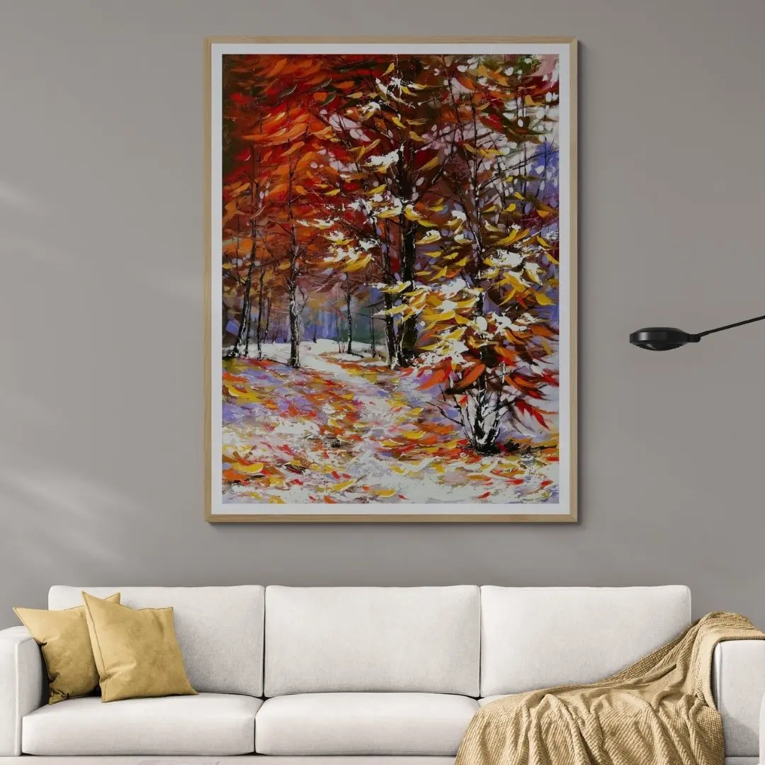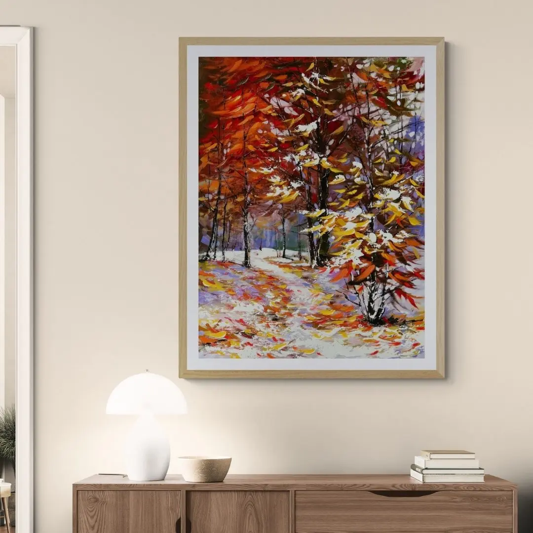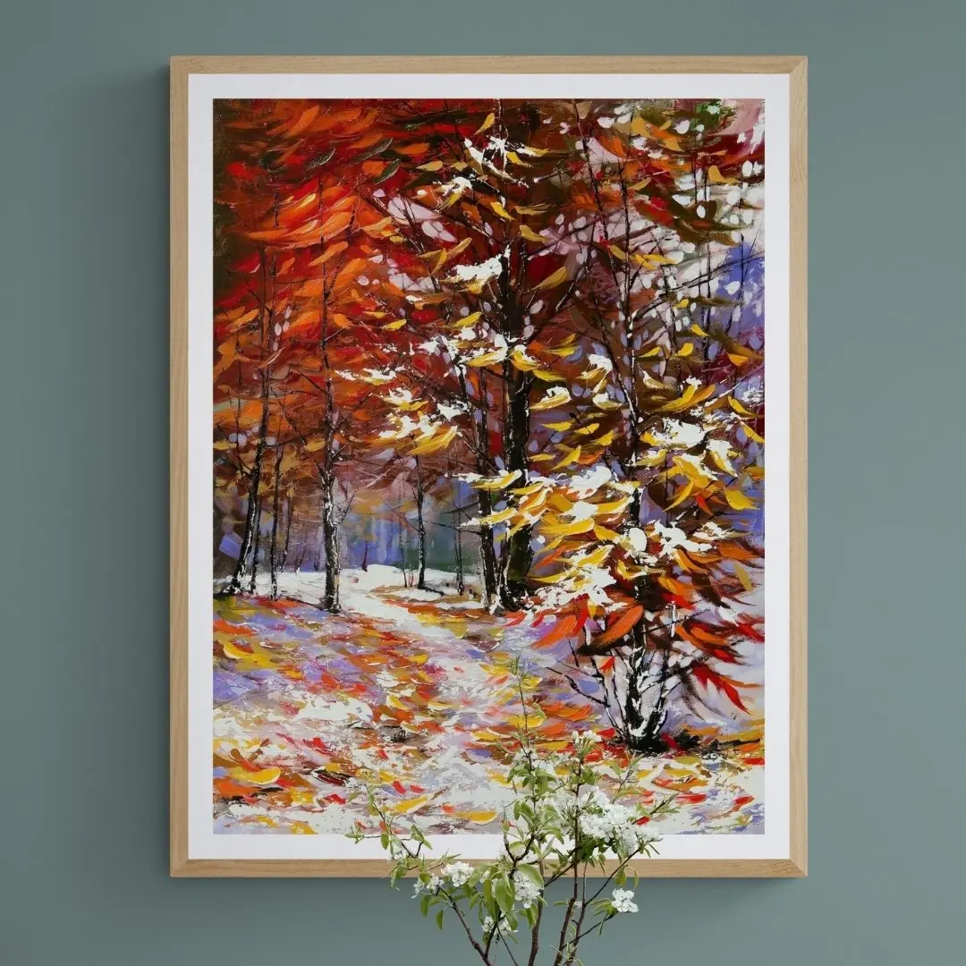 Perfect for modern Indian homes, this artwork enhances living rooms, bedrooms, hallways, or offices with a soothing sense of calm and reflection. Whether you’re looking to create a peaceful corner or add a touch of nature-inspired sophistication, Winter Tranquillity brings a refreshing, meditative presence to any wall.