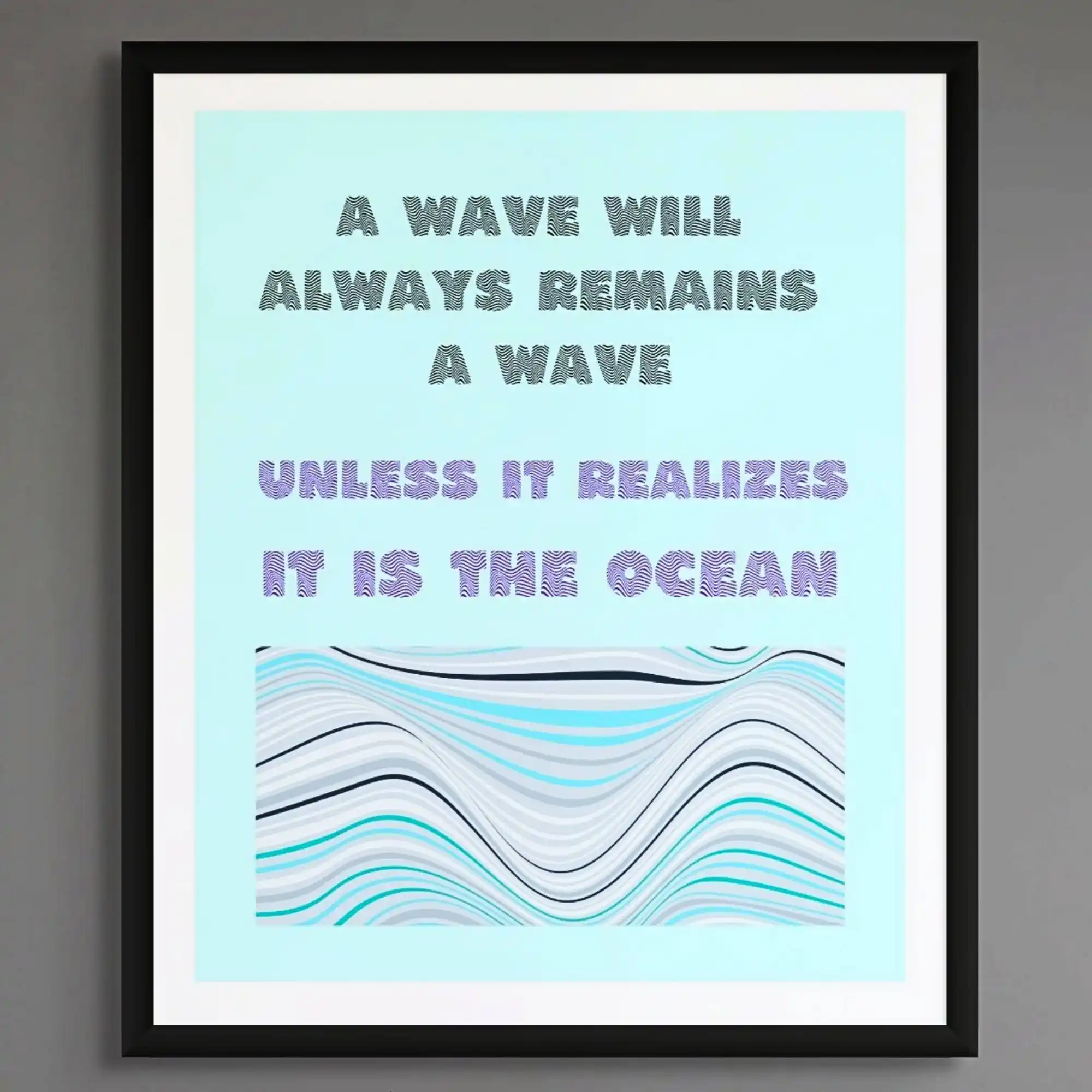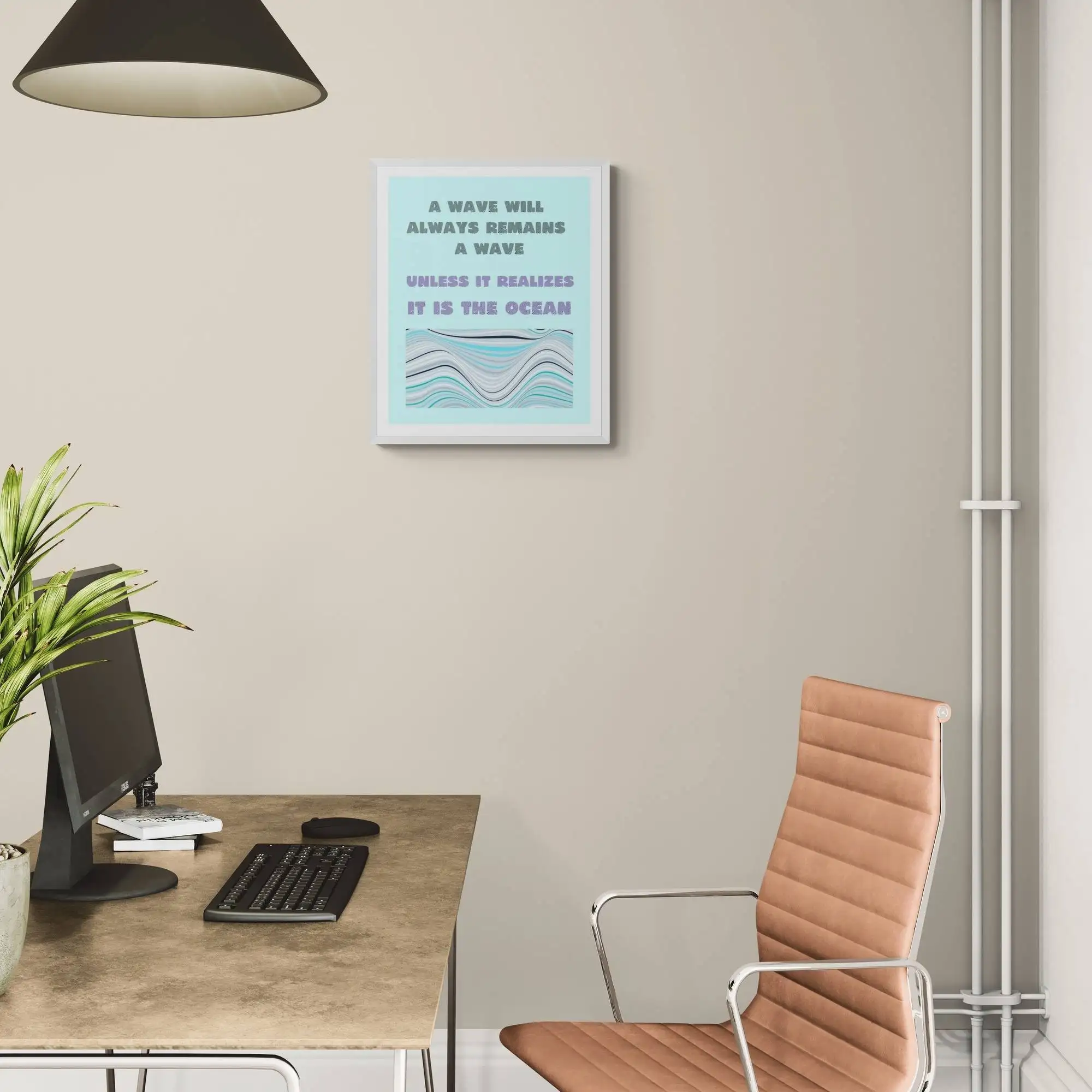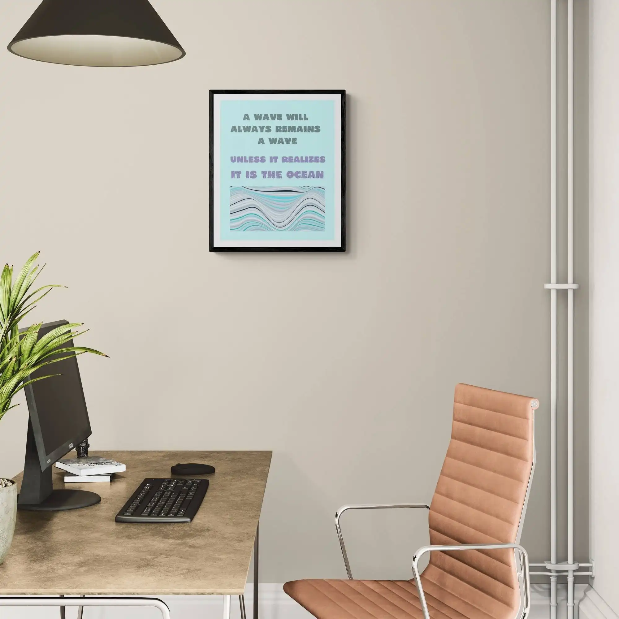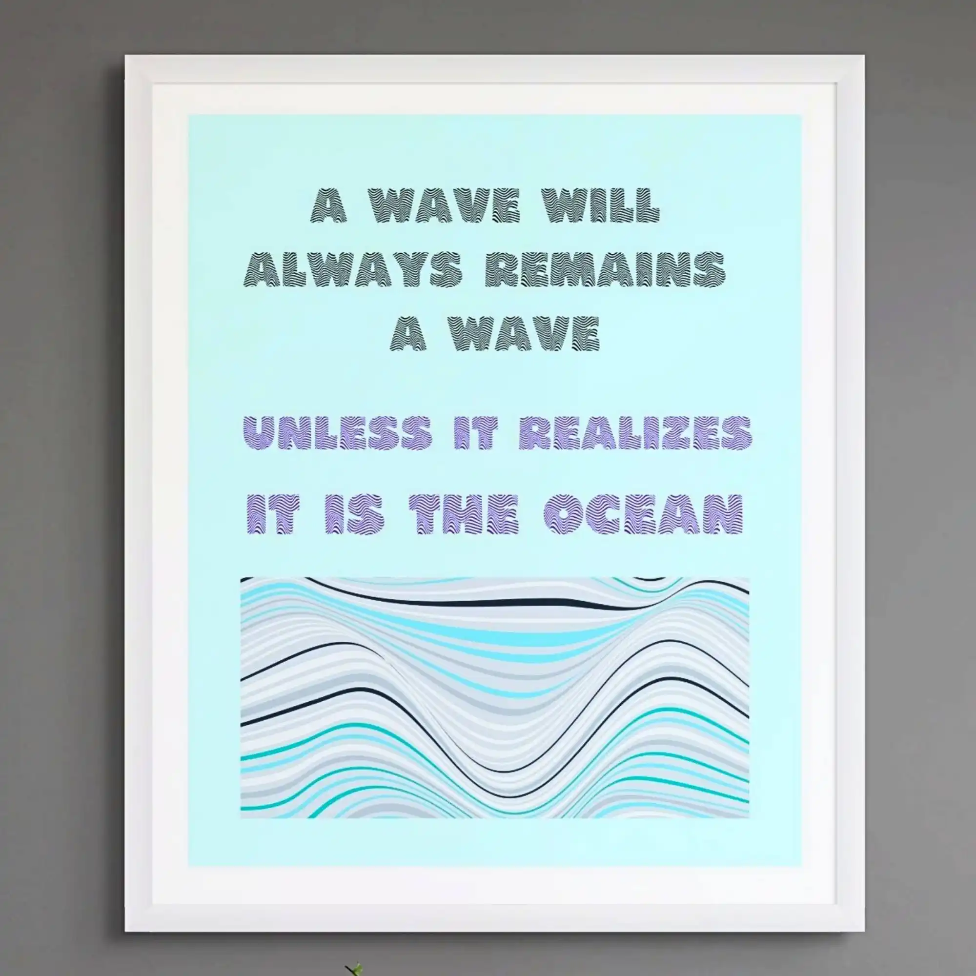 This quote is a reminder that you are capable of more than you imagine. Reflect on the profound metaphor of the wave and the ocean with this thought-provoking framed art. A beautiful reminder to connect with your inner depth and realize your true potential.